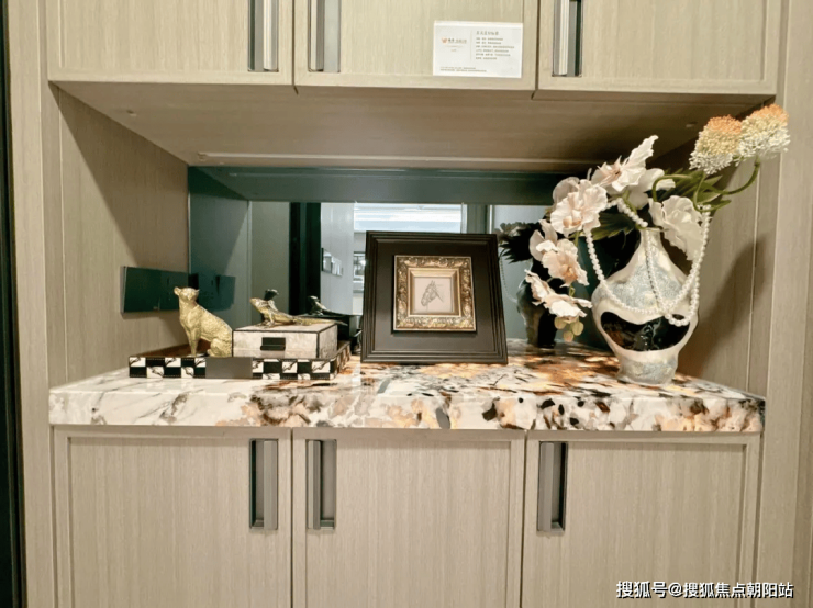 家的温情欢聚场:在餐厅区域,我们安置了一件餐边柜,其透光台面设计采用了雪山飞狐奢石材质,该餐边柜在收纳和储物功能上表现出色。