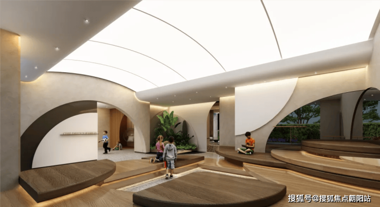 在社区功能布局上,构建了四大功能区域:包括三个入口轴线和一个中心水轴;三大花园空间:中心港湾花园、水溪花园以及西入口归家花园;五大运动活力系统:热身区、定制主题儿童活动区、老年健身区、活力健身区以及休憩缓冲区,这些区域由约400米的跑道相互连接;泛会所:坐落于5号架空层。