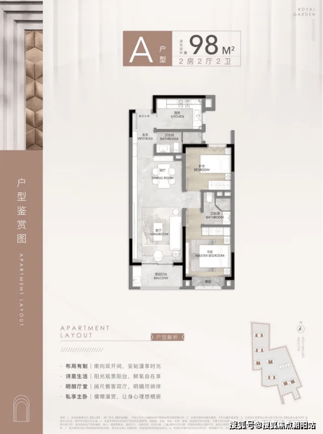 在住宅户型设计方面,可以明显感受到企业的实力与匠心独运。市场上常见的“百平米三居室”往往流于形式,很多设计仅仅是勉强拼凑空间,导致居住的舒适度大为降低。大多数此类小三房户型中,北向的房间过于狭小,难以容纳标准尺寸的床铺,仅能作为书房使用;厨房与餐厅的空间亦显局促,影响烹饪与用餐的体验,这些是市场上小三房普遍存在的问题。然而,在「静安玺樾」项目中,这些问题均得到了妥善解决。为了提升居住品质,「静安玺樾」的98平方米两居室设计充分考虑了空间的尺度与舒适性。