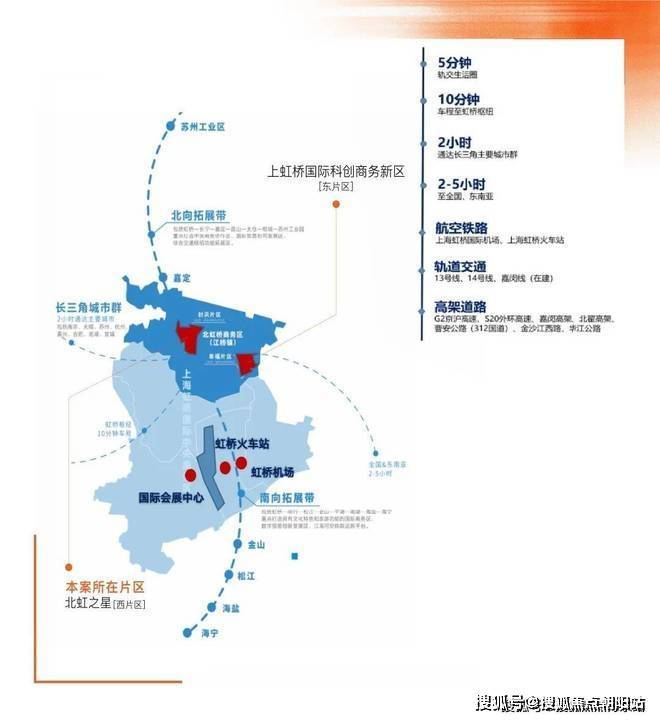 北虹桥作为虹桥国际开放枢纽的创新承载区,兼具“长三角,大虹桥”的双重区位优势,将承载虹桥国际中央商务区主导功能,成为链接辐射长三角的创新经济集聚区、中央商务配套区和高品质国际化社区。“上虹桥·城市更新区”项目围绕“开放北虹桥,创新领航地"总体定位,以承载虹桥商务区主导功能、链接辐射长三角为方向,聚焦打造创新经济集聚区、中央商务配套区和高品质国际化社区,引领赋能虹桥国际开放枢纽北向拓展带发展。(数据来源《上虹桥·城市更新区规划发布》)● 交通与基础设施建设: