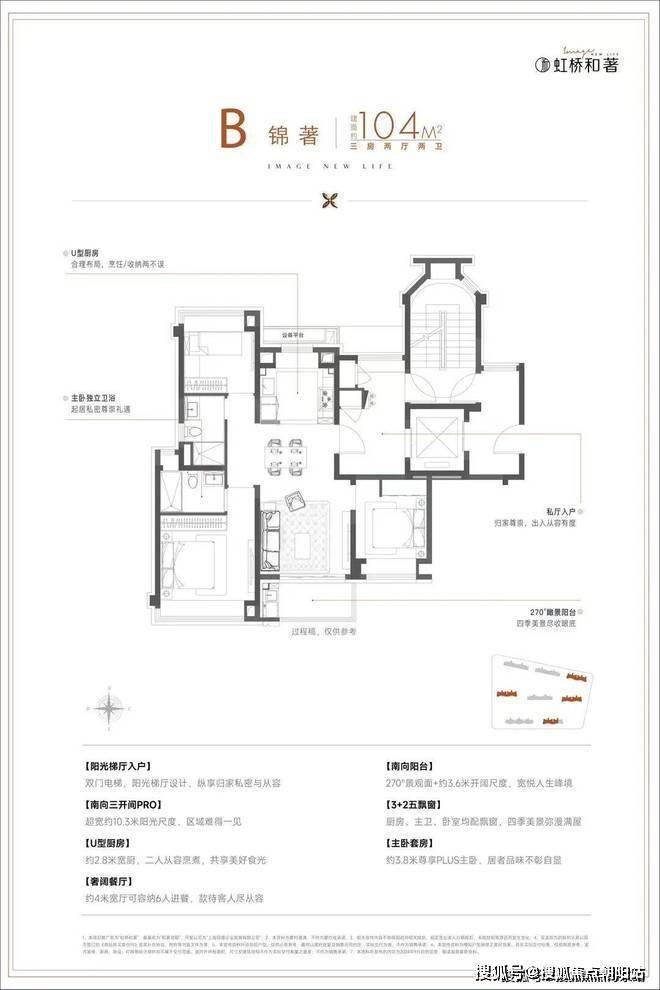 从户型图就能看到,这个房型是南向大面宽的设计,三开间面宽达到了约10.3米,赋予居所大气磅礴的空间感与层次感。百平米的不将就三房,实现房间数量及空间尺度的均好平衡,保证一家人舒适相处又各有天地,可以满足两口之家的改善起步,三口之家的其乐融融,三代同堂的多人口居住需要。