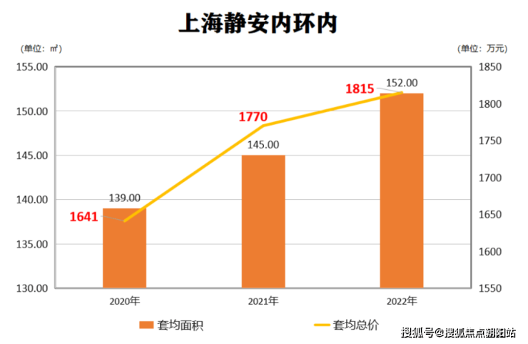 几乎所有人都渴望跻身于内环区域。内环,这片仅占上海总面积1.8%的土地,汇聚了这座城市最为精华的资源,并承载着这座城市最为 深厚和浓郁的文化底蕴。这一现象也推动了房地产市场价格与价值的持续攀升。观察最近三年静安内环区域的新建住宅数据,可以发现,新建住宅的平均总价从2020年的1641万元增长至2022年的1815万元, 平均总价增长了近200万元。