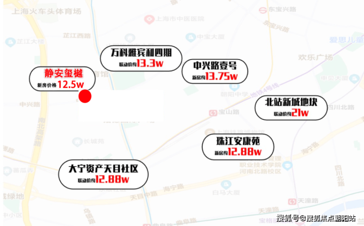 目前周边的新房价格来看,安康苑在2021年时均价已经来到了 12.88万/㎡,万科雅宾利四期联动价约 13.3万/㎡,此外中兴路一号攀升至 13.75万/㎡,以及静安04-05、05-01北站新城地块 21万/㎡惊人的房地联动价。