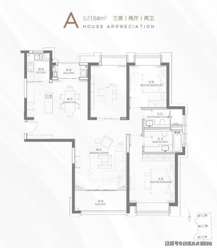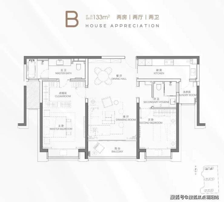 主力户型:2房133㎡、2+1房135㎡、3房150-154㎡