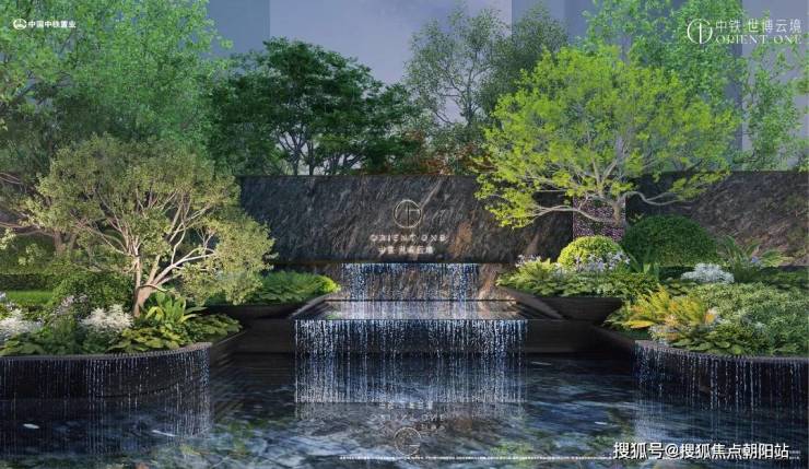 走过虚实结合的格栅与实体墙,映入眼帘的跌水景墙,跌级层次种植池搭配铁冬青乔木,自然花境增添野趣,为业主的归家之路增添几分意趣