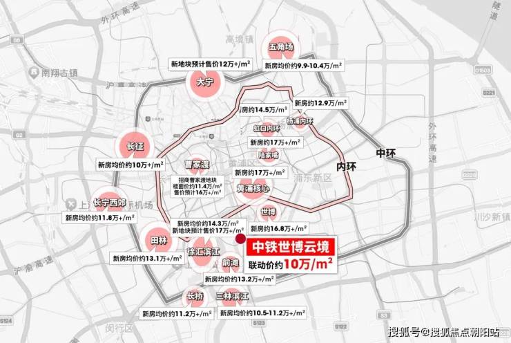 目前上海内环核心地段新房价格遍地15万/㎡+、内中环普遍来到12万/㎡+
