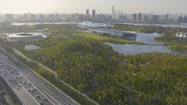 不止如此,世博板块从北到南串起了白莲泾公园-世博公园-后滩公园-前滩友城公园-前滩休闲公园-前滩体育公园6座已建成的公园,生态资源浓厚到溢出!