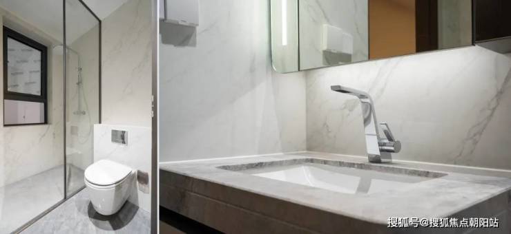 例如金属雕纹的装甲门、白色系玉石的定制门牌号、白雪公主透光云石的玄关柜面、内置消杀机的鞋柜、圆弧吊顶和感应灯、普罗旺斯水晶灰岩板背景墙以及地面拼花设计、定制墙纸、全屋智能化系统,中铁世博云境的品质细节武装到了牙齿!