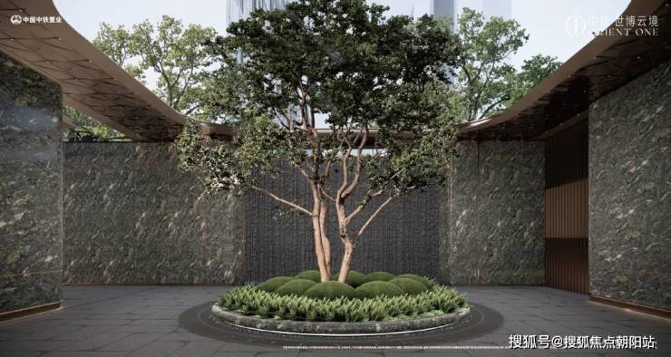 奢石景墙与定制金属、大乔木融合打造隐奢豪宅入口,进口铂金钻奢石满铺立面搭配灵动水景,营造出一种低调奢华的氛围,引领业主的归家仪式