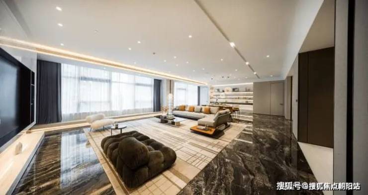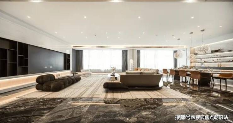 百年罗汉松 造价千万石材 约11米挑高大堂让想象力不再受限:大堂挑高约11米,仅石材用料价值千万,地面采用名贵进口石材劳伦黑金,成就身份与地位的彰显。顶部汲取德国世博馆设计灵感,通过材质分隔,演绎力量感与艺术气息。恢弘气势与毫厘细节,可按需定制全场景美学,