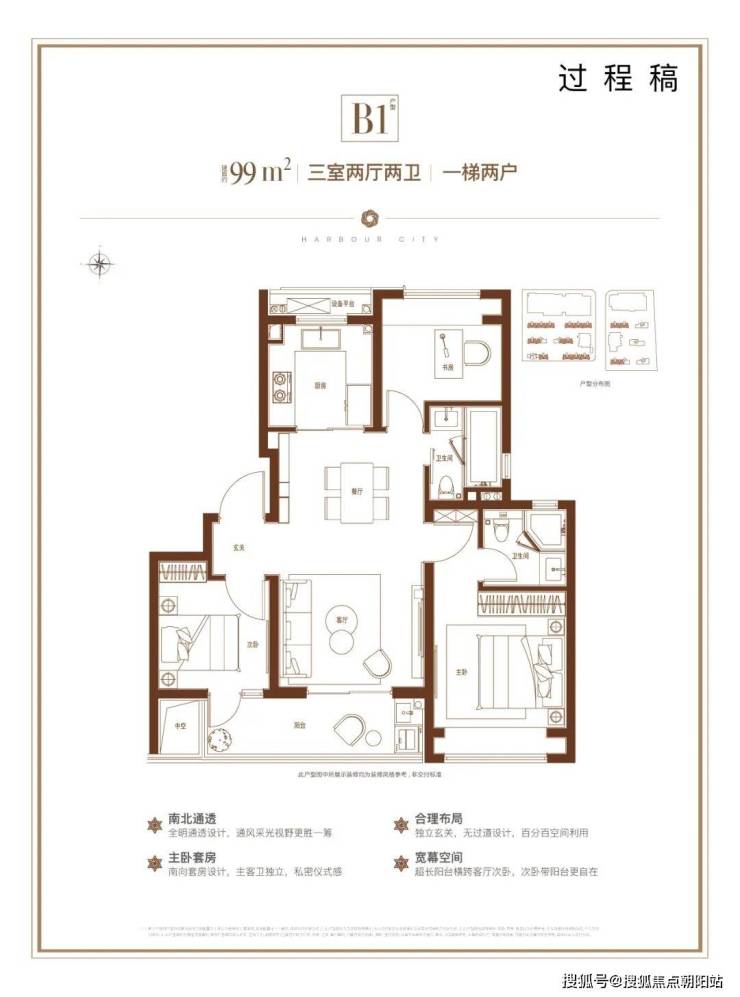 不得不说,这个建面约99㎡3房2厅2卫户型,能满足业主从二人世界到三口之家,再到二胎家庭的全生命周期需求。