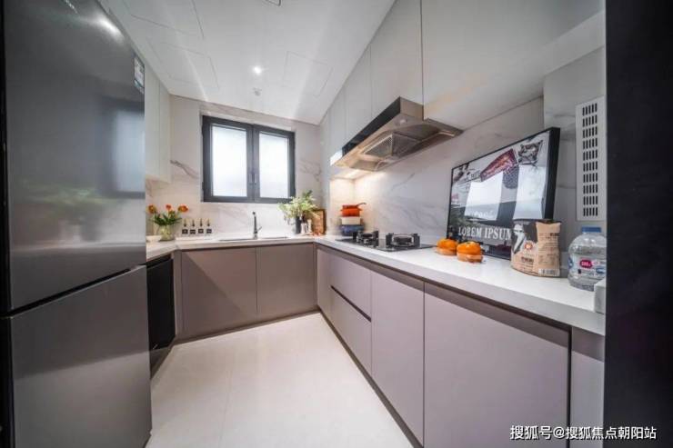 U型厨房设计,左侧预留了冰箱位置,让整个空间的利用率更高。
